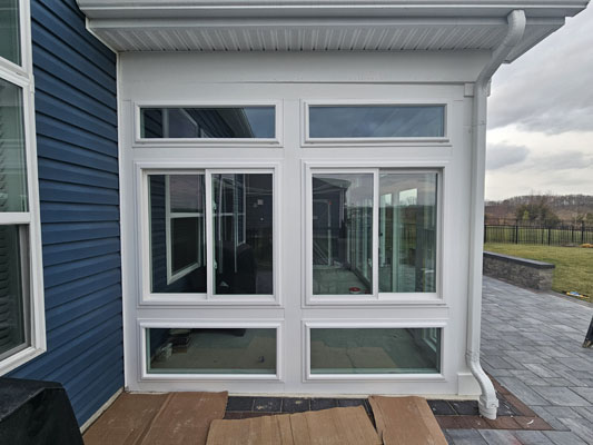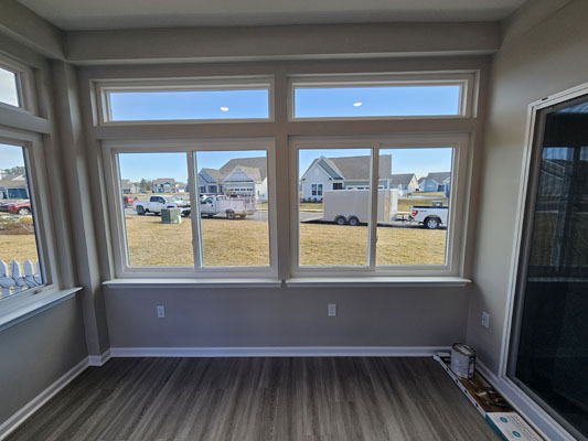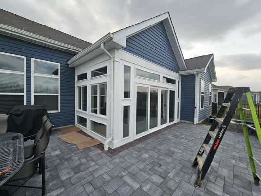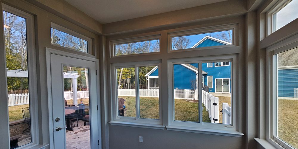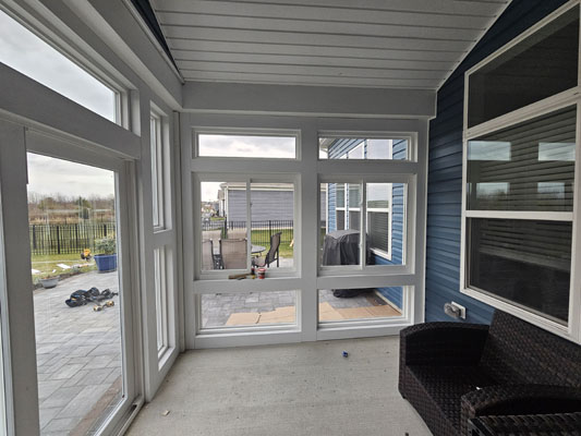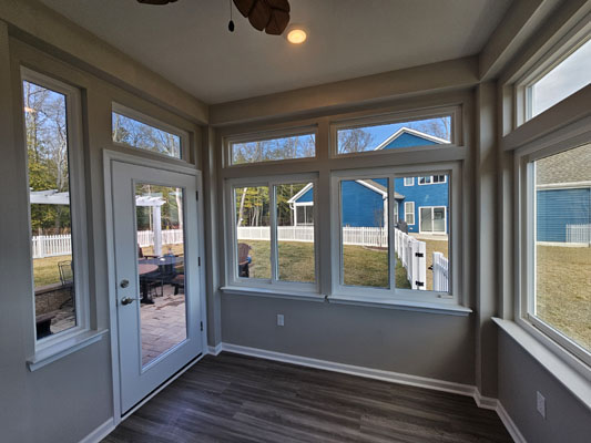 Large Windows: The room features expansive, energy-efficient vinyl windows on all sides, maximizing natural light and visibility. This is typical for a three-season room, designed to be used spring through fall.
